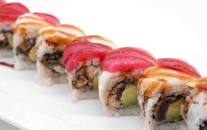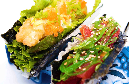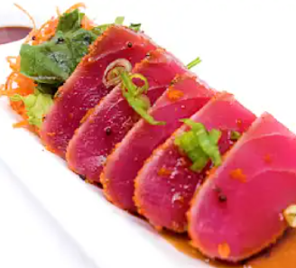 Sushi: 2 pcs per order. Sashimi: 4 pcs per order.